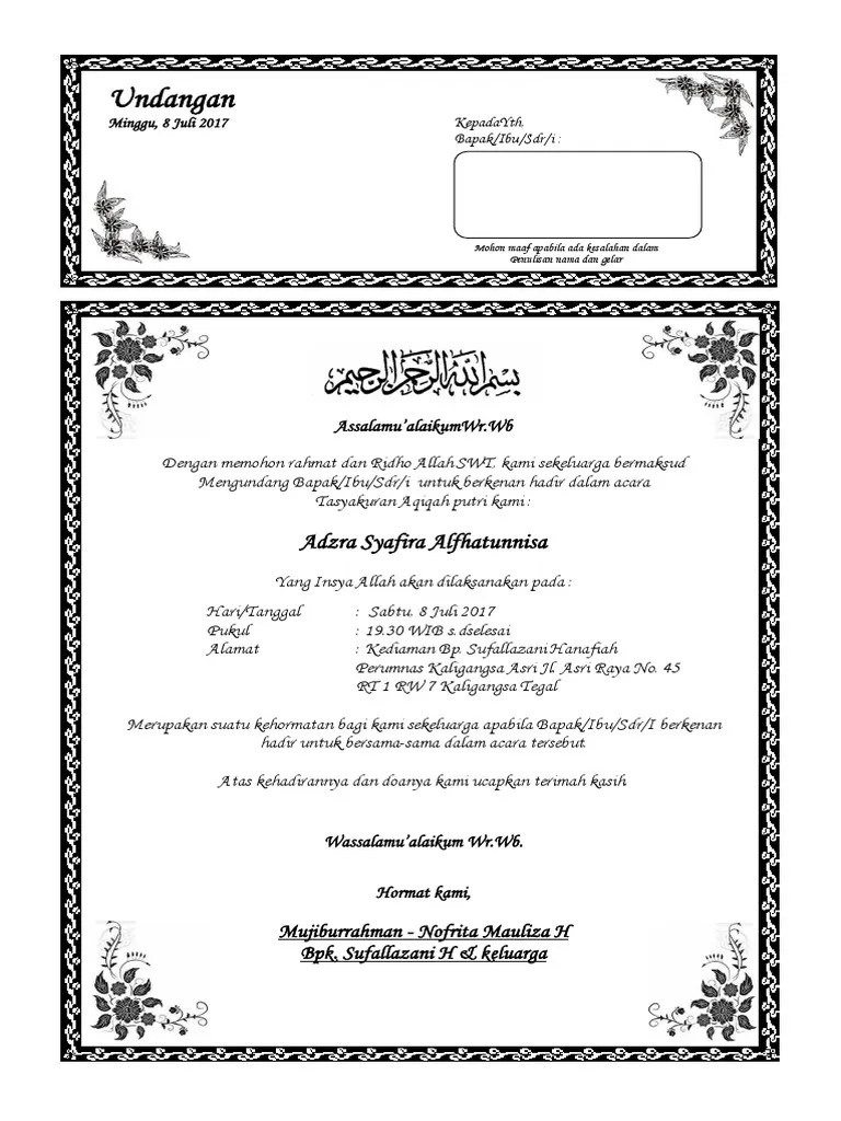 Contoh Undangan Syukuran Aqiqah Anak - 10 Ide Desain Undangan Aqiqah Yang Bagus Menarik Tokopedia Blog - Tasyakuran aqiqah microsoft office word signs .